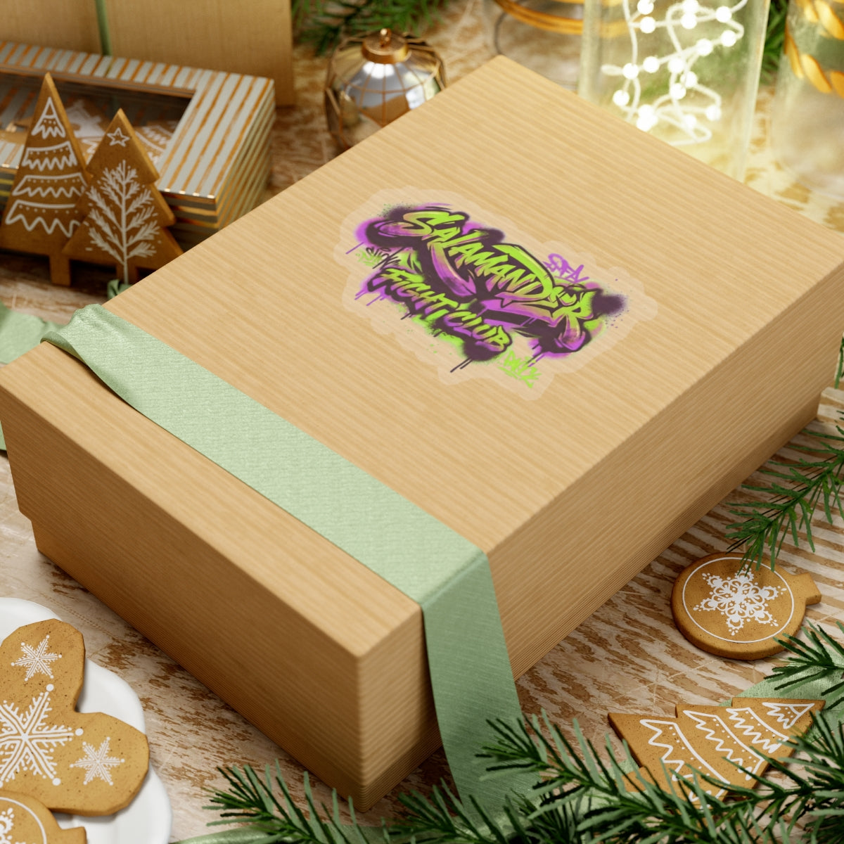 Salamander Fight Club Graffiti Sticker — Neon Street Art Kiss-Cut Decal