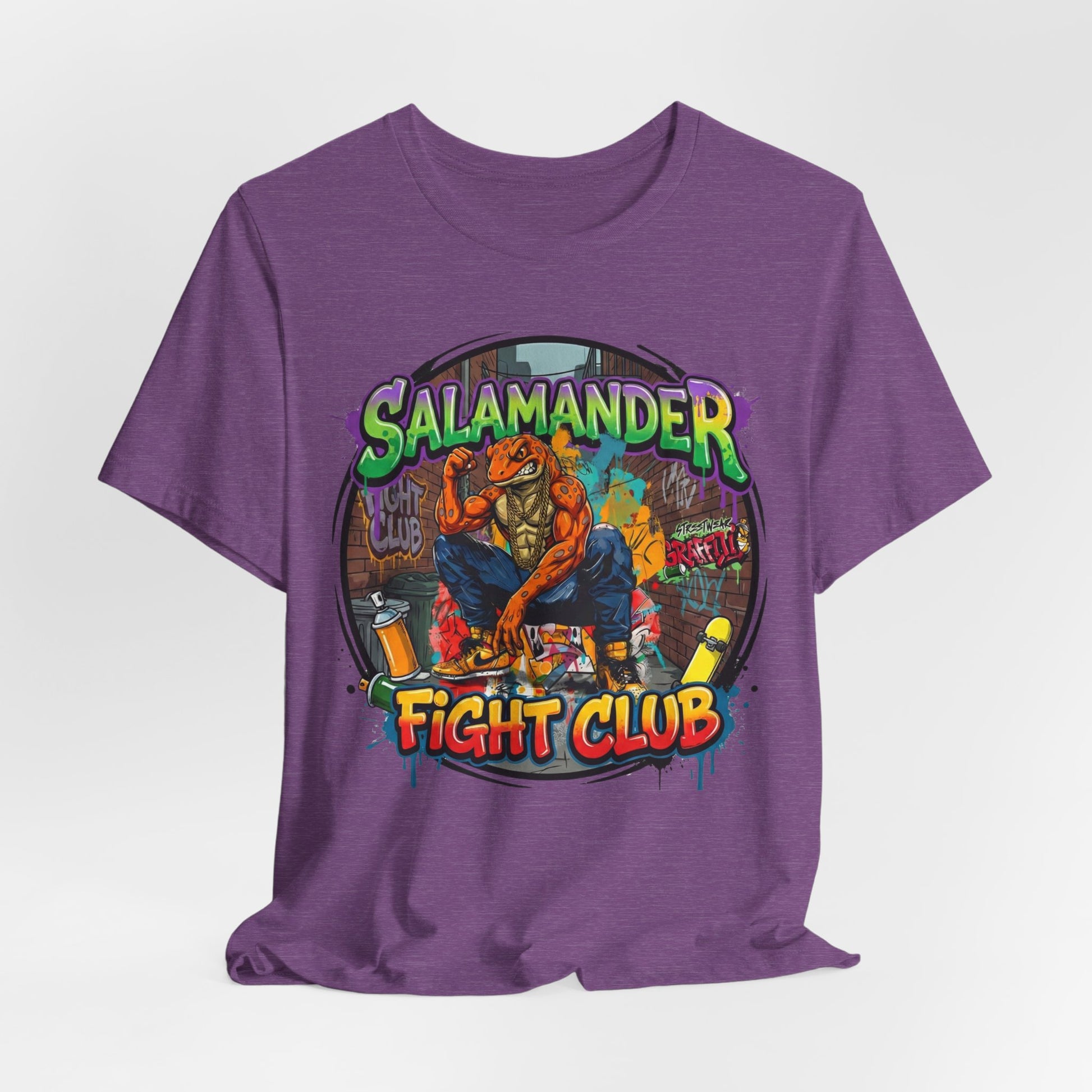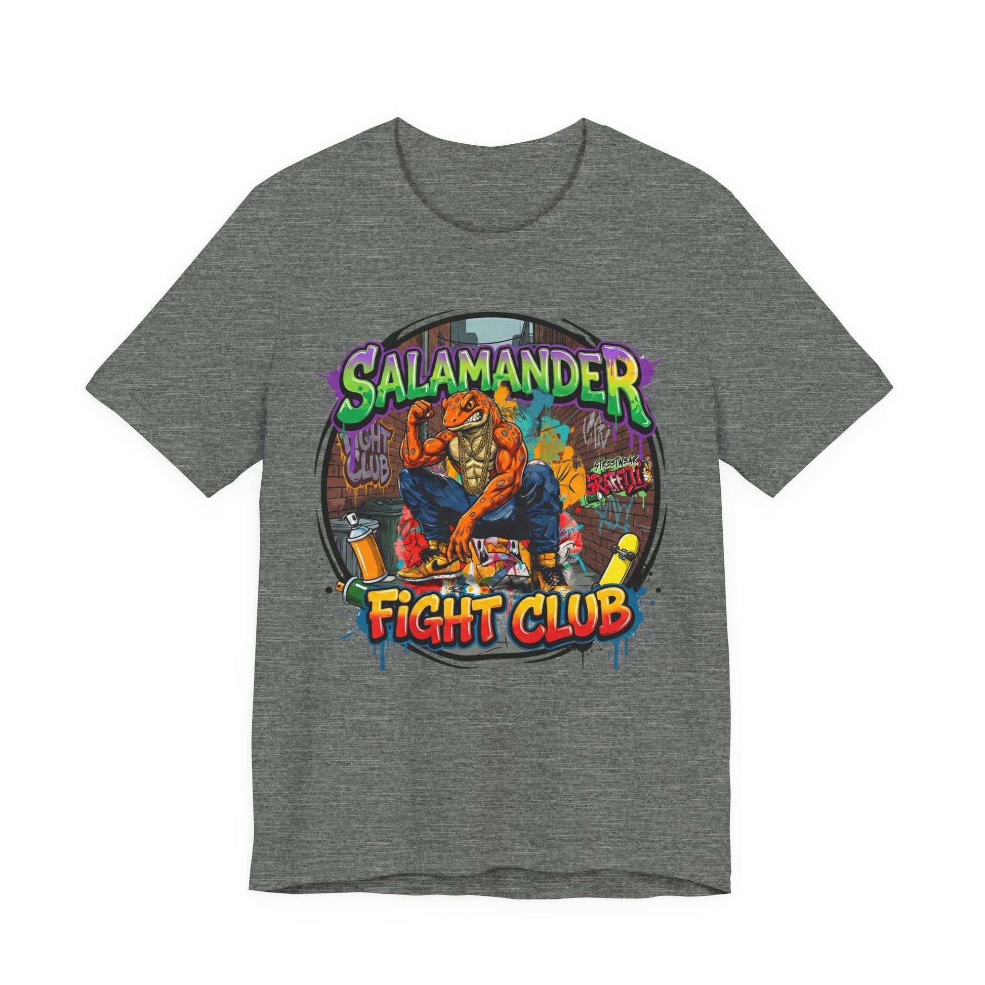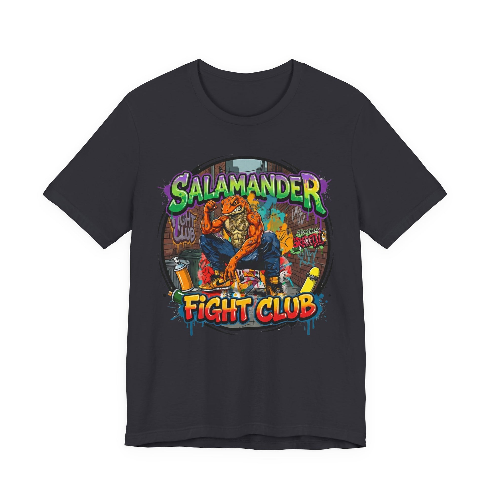 Keywords: streetwear t-shirt, graphic tee, Y2K fashion, oversized tee, heavyweight cotton shirt, graffiti art clothing, skate culture apparel, urban streetwear, 2025 streetwear trends, boxy fit tee, unisex graphic shirt, salamander fight club, underground fashion, statement tee, bold graphic design