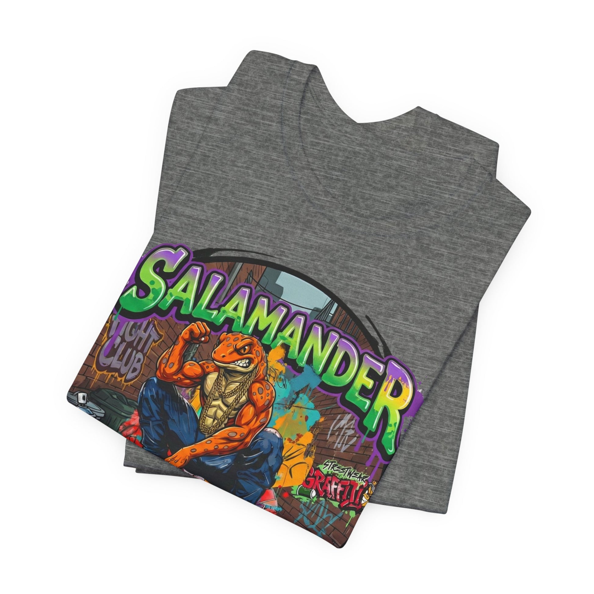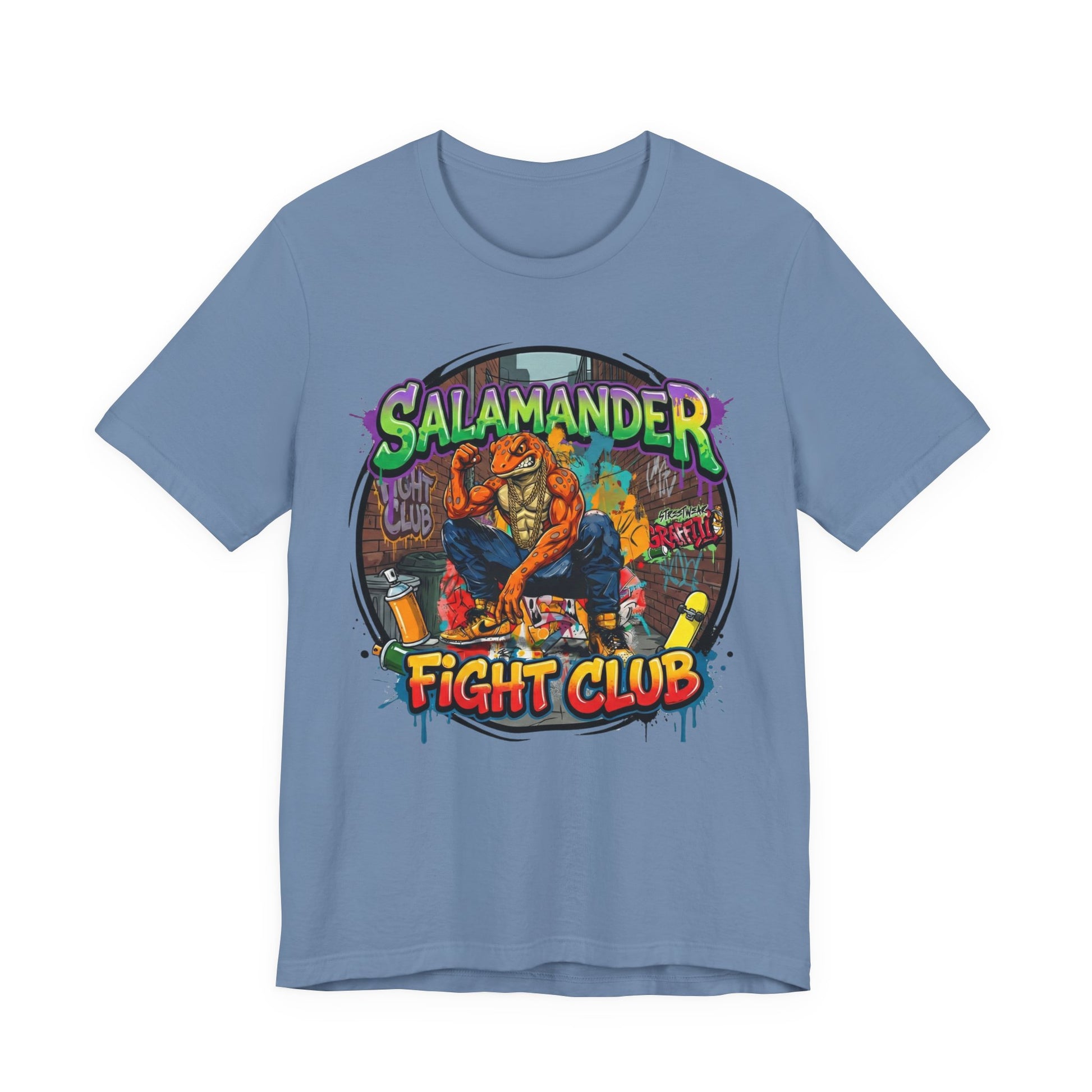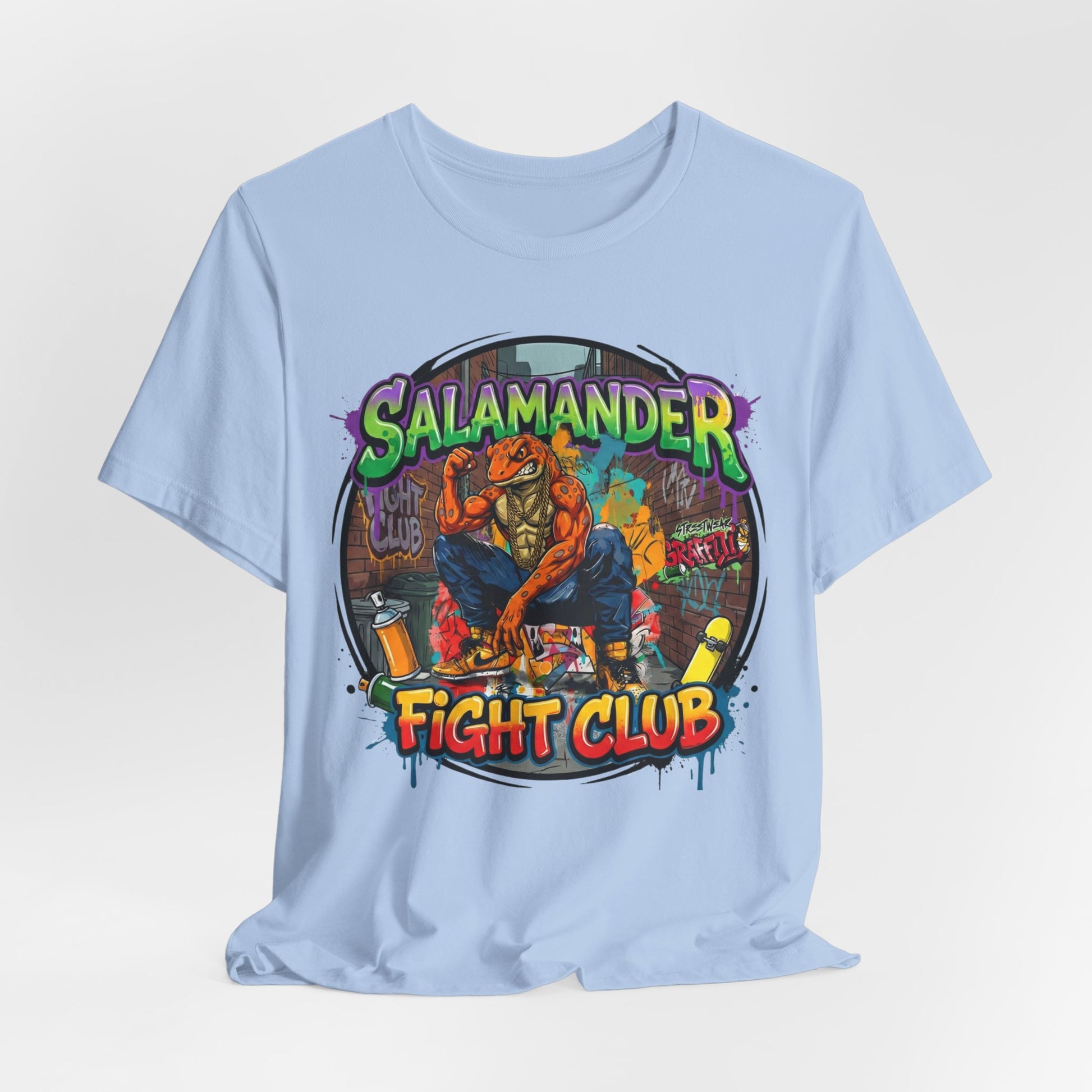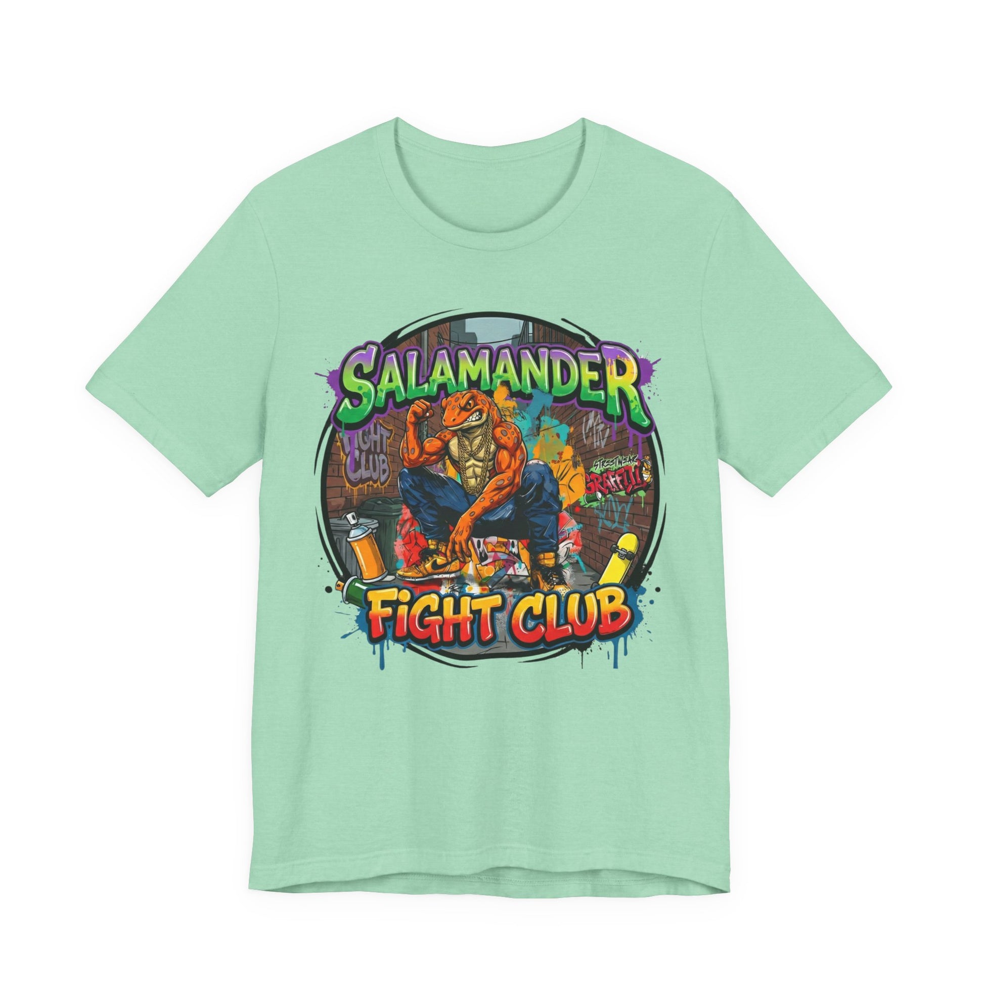 Keywords: streetwear t-shirt, graphic tee, Y2K fashion, oversized tee, heavyweight cotton shirt, graffiti art clothing, skate culture apparel, urban streetwear, 2025 streetwear trends, boxy fit tee, unisex graphic shirt, salamander fight club, underground fashion, statement tee, bold graphic design